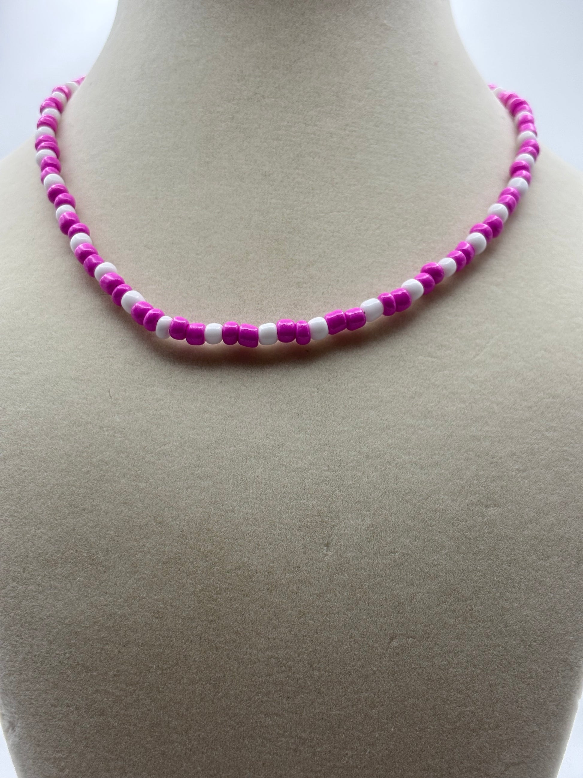 Made with glass seed beads with silver chain & lobster clasp